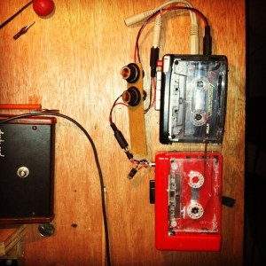 2 cassettes joined by laser-cut acrylic and tape loop, feedback routing and attenuators